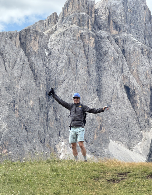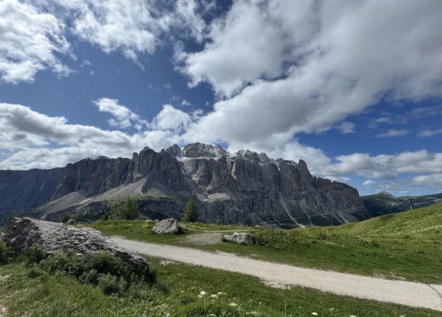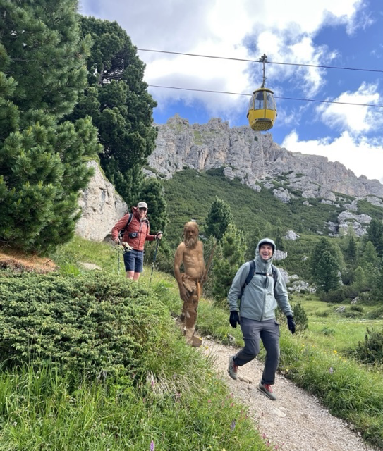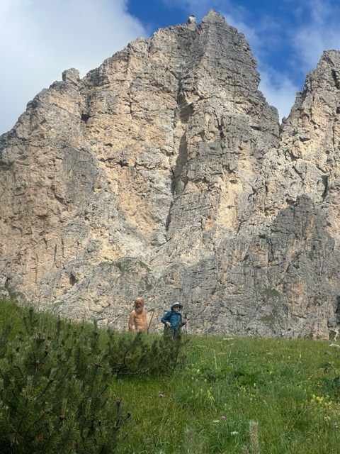 We started with a lift taking us to the Gardena Pass, one of four mountain passes that encircle the Sella Massif. We were then hiking the Puez-Odle park, an UNESCO World Heritage site. We passed through the village of Corvara and could see into the Badia Valley, “considered to be the heart of the Dolomites region and the indigenous Ladrin people.”