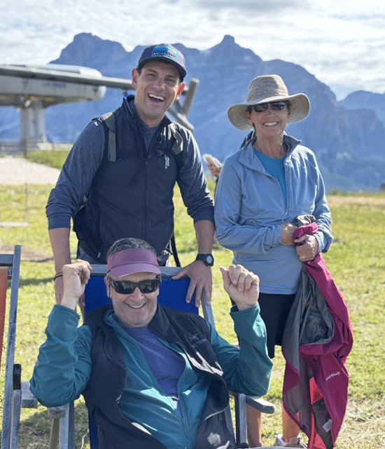 The whole group looking at the view on the edge of the ground outside the rifugio. Well, all but Matthew who was on the run per usual!