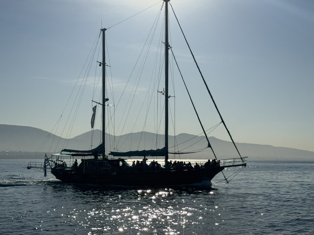 I wanted to explore with the family, so went on Viatours to find something that would be a day excursion and found a boat trip that went to three islands. It looked like a sailing boat from the ad, but nope, it motored, but it had these crazy big cushions that every one sat on for and aft and we just motored along. The weather was perfect, I had a good spot with a fair amount of sun protection (it’s hot!). I read two parts of two different books, chatted with a few passengers and had a very chill day.