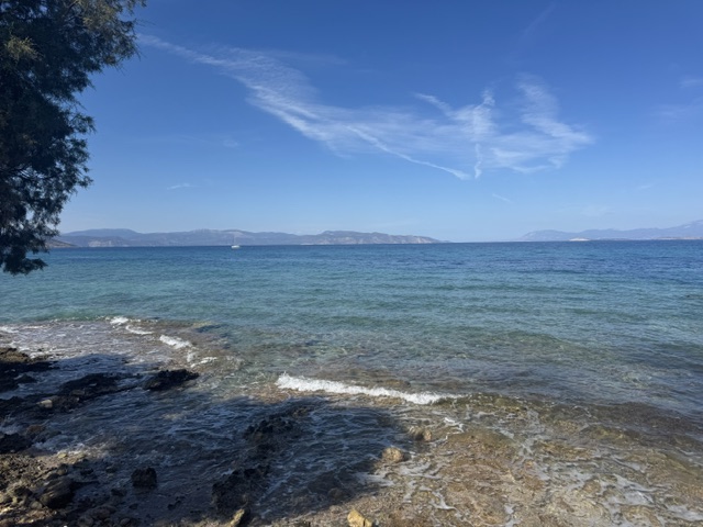 We had three stops, I walked out and back at the first island, Agistri. I had thought I’d rent a bike, but it really was just the shoreline and then I would have been riding up into hot and arid hills, that didn’t really call. But I had a decent walk and the water was beautiful.