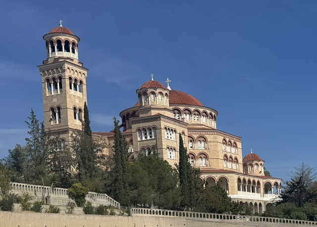 The last island was Aegina, known for pistachio production. They had all kinds of pistachio products, but way too early in the trip to buy anything and I’m not wild about pistachios anyway so didn’t try any (“they’re so fresh!”). However, it did have a totally cool temple and monastery. Two other women and I shared a taxi for a set fare and he got us up to both places and back to the boat in time.