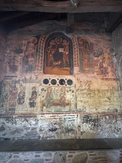 The whole monastery was painted with icons and frescoes telling stories. These are original and have held their color so well because of the protection, over 400 years old.