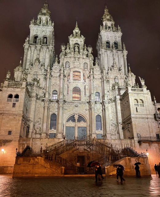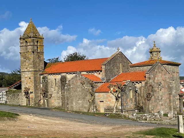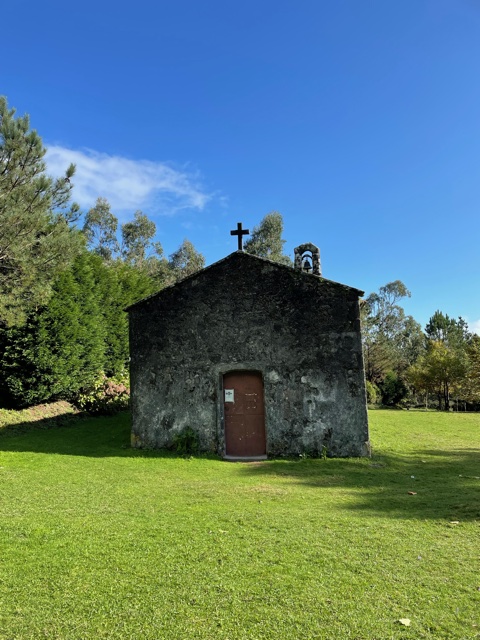 The walk was beautiful today. I realized, though, as we went through more ancient areas that I had lost my constant companion – The Pilgrimage Road to Santiago. For 6 weeks, I’ve carried pages every day giving me stories, architectural, historical and religious relevance for just about every town I came across. Rick told me he’d read that I’d gone through 350 towns in those weeks – a stat related to the Camino Frances. And – the book is done. Stopped in Santiago. I kept reaching for my pocket when I saw a small ancient church or something like this – so beautiful! But what’s the story?