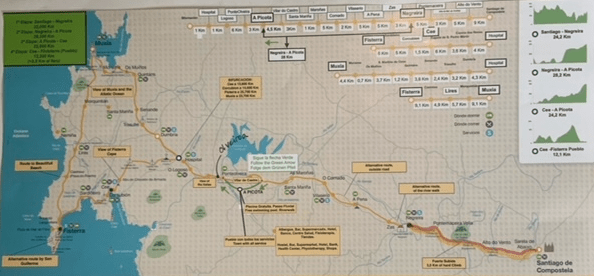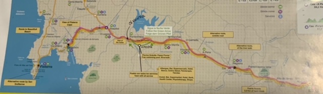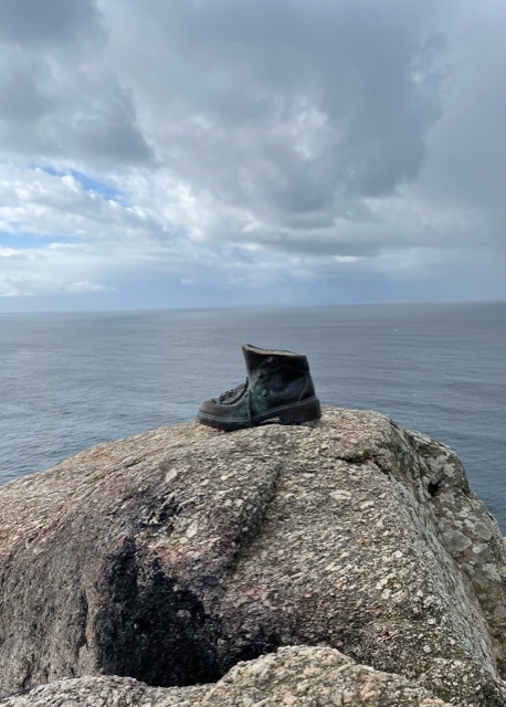 Rick and I are walking to Fisterra (Galician spelling) or Finisterre (Spanish). The end of the earth. A Camino website writes this: Until the end of the Middle Ages, the Costa da Morte was the last outpost in the known world. The place from where pre-Roman peoples believed that souls ascended to heaven. A mythical, symbolic place which would leave the Roman conquerors open-mouthed when they saw the sun disappear behind the immense ocean. From then, the farthest point of Cape Fisterra magnetised all its visitors.