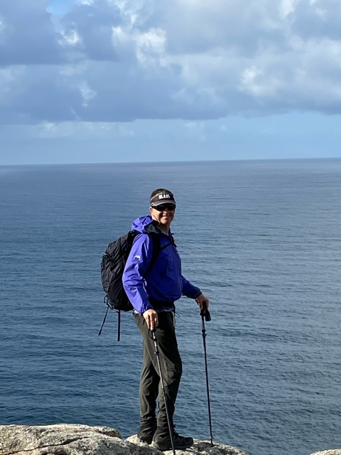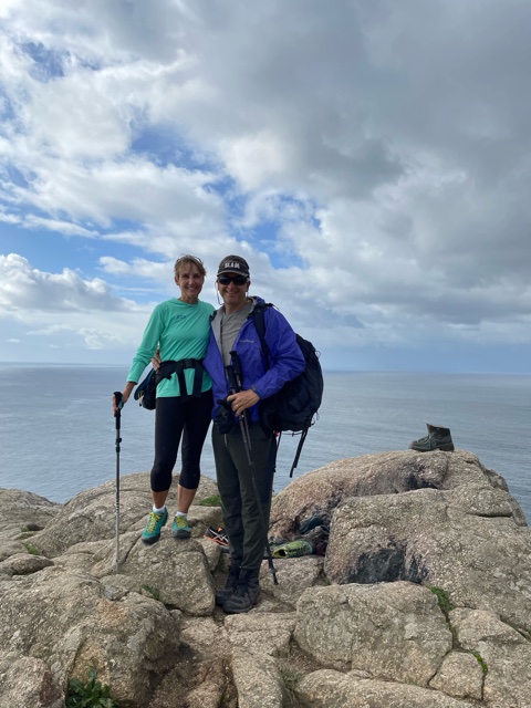 This is us when we saw the ocean. We actually weren’t sure, another cloud bank? Hills? Then Rick saw a very large boat – yep the ocean. I can’t even imagine what it would have been like for a pilgrim who’d never seen the ocean and had walked for so many miles.