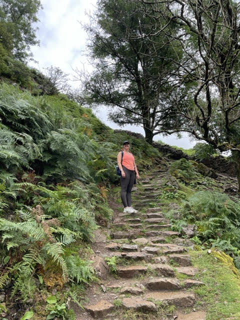Completely wonderful day. We are still in Grasmere and started the day by climbing Helm Crag. Then we returned to town for lunch, looking until I could find a place that had soup and salad, then had scone in another place that’s been serving tea for hundreds of years (though new looking at this point), and back out towards a falls and a high lake that we’d seen from the Crag. 9 miles.