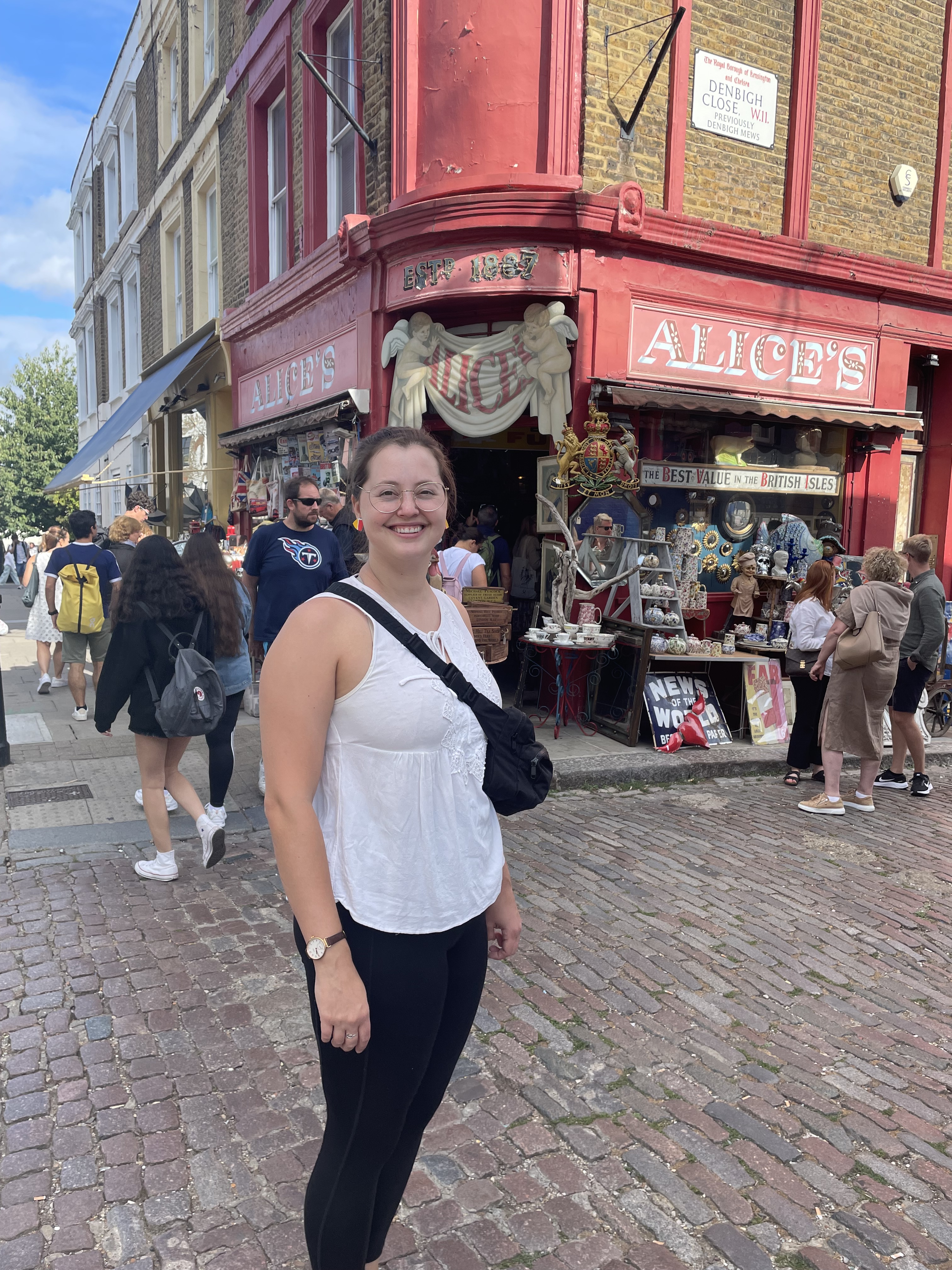 Day 2 – a full day in London – how cool is that?! And we…walked. 10 miles today, definitely getting in my training for my next Camino walk. We started off with the Portobello Road market. Fun to see, got a coffee and then kept walking through back neighborhoods around Notting Hill. Gorgeous. We took the Tube, happily running – they’d been on strike yesterday – over to Black Friars bridge, walked over to the Tate and thought we’d see an exhibit that looked totally cool, a Japanese artist and mirrored rooms. Sold out for a LONG time. So used the bathroom and kept walking