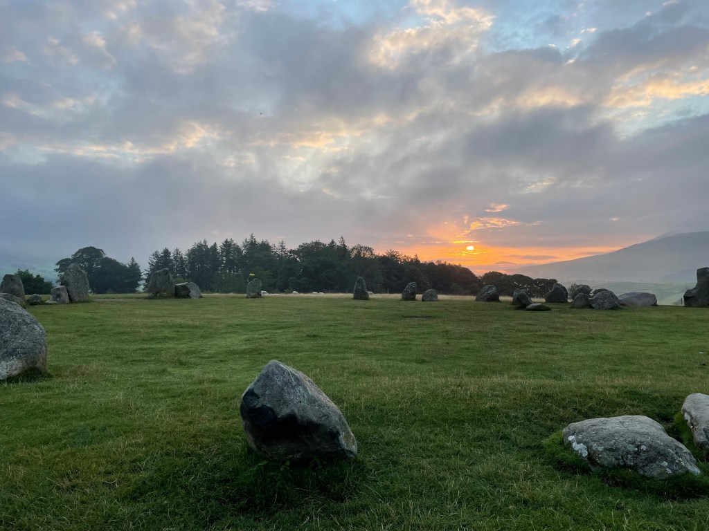 We’d been back, showered, stretched, read for an hour and I just remembered that the taxi driver who’d dropped us off in Keswick had told us that there was a stone circle just up the road. So off I went. It was amazing. Kaziah is going to go back with me early tomorrow to see it in the morning light. Sunrise is at 6:08, so sadly, don’t think we’ll be able to see the sunrise over it, but still, it will be amazing. What a final gift from the Lake District!