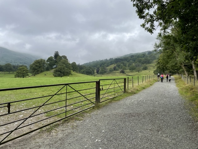We walked out of Lancet House, up the road, then onto the path and we were on our way to Grasmere. We’d hardly gotten a head of steam going when we came up to Rydal Hall. A bit of history: The Fleming family can be traced back to 864AD and were related to Baldwin, Earl of Flanders. When William Duke of Normandy (William the Conqueror) mustered his troops to invade England and claim the throne in 1066, the then Earl of Flanders joined him and brought with him his kinsmen in armour. One of these was Sir Michael le Fleming who was also a kinsman of Matilda wife of William the Conqueror. Amazing. This manor house was the adaptation from the first building, built in 1409. Amazingly, the family lived and owned it continuously until 1973. The main reference people make to it though, is that Rydal Mount was the house Wordsworth rented from Fleming until Wordsworth’s great granddaughter bought it in 1969.