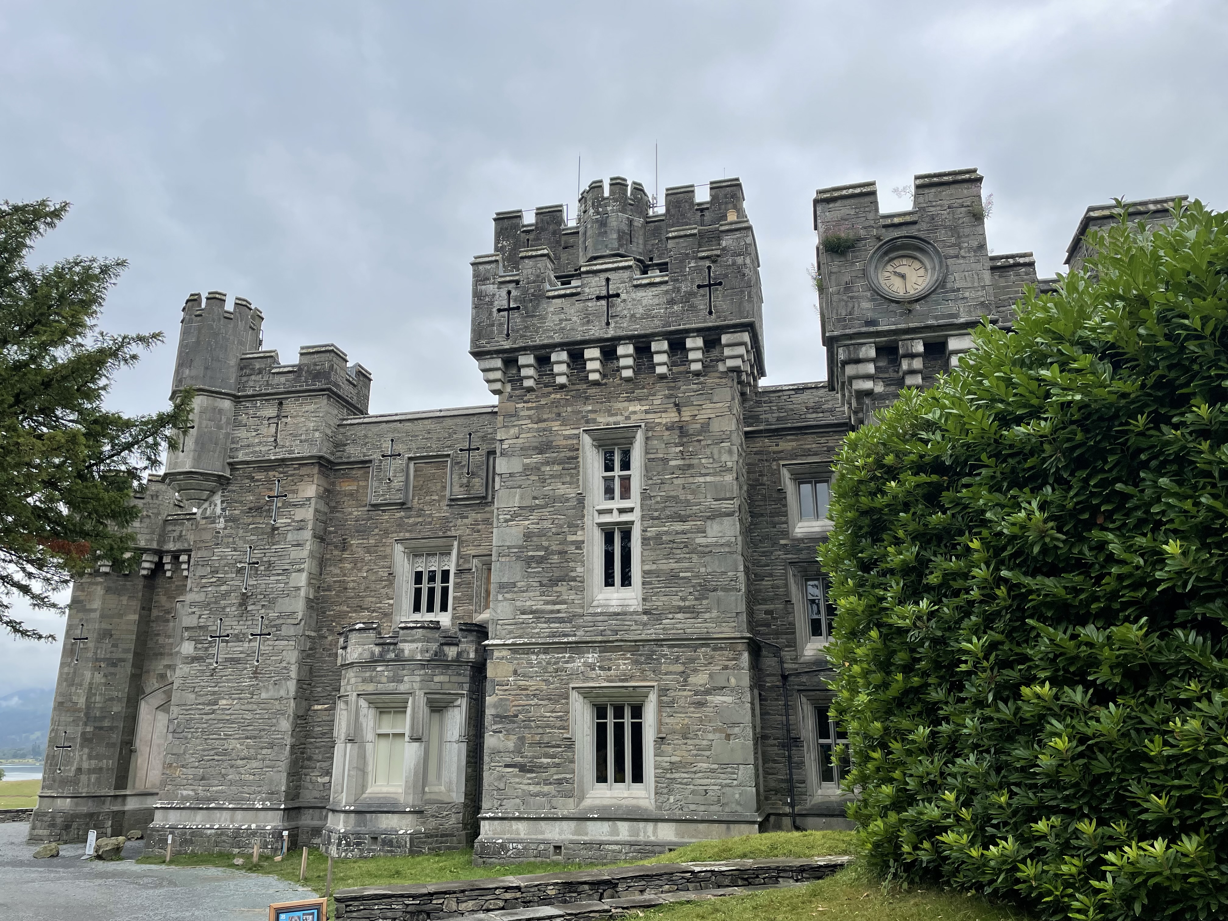 Day 4 – We’re off! Our first day of walking and it was wonderful. We got so so lucky because the rain didn’t start until 2:30 so we had hours of dry exploring. We took a ferry across Windermere – how cool is that to start a walk? Got dropped off at the foot of Wray Castle. A Victorian folly built by Jame Dawson, a wealthy surgeon from Liverpool and his wife Margaret in 1840. Amazing.
