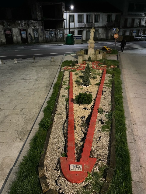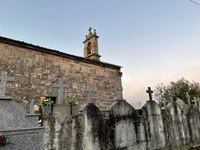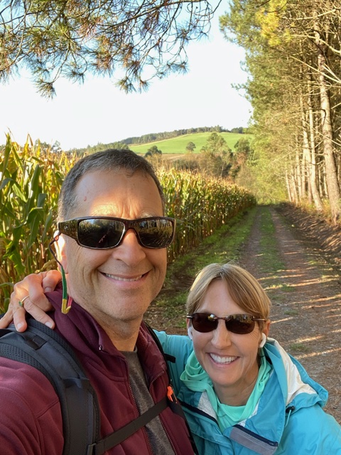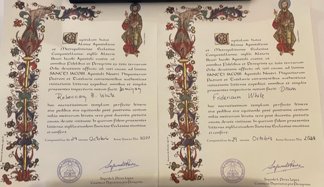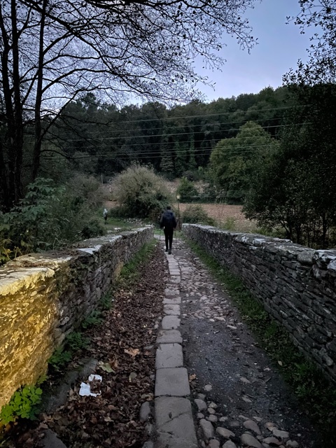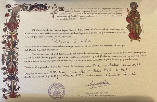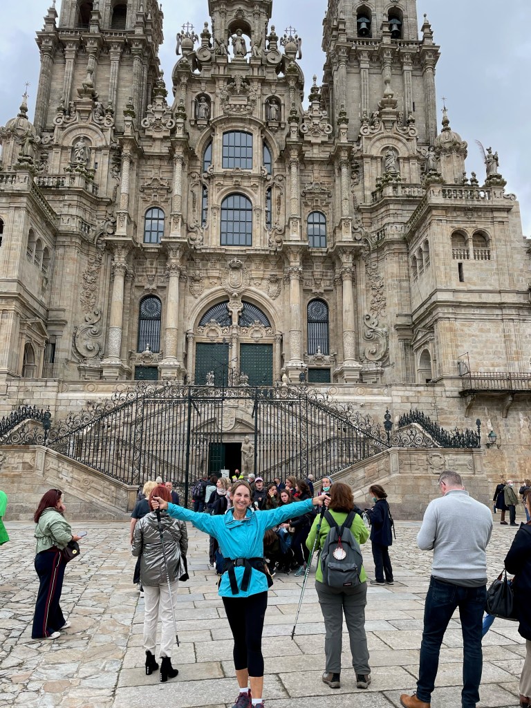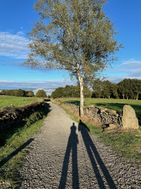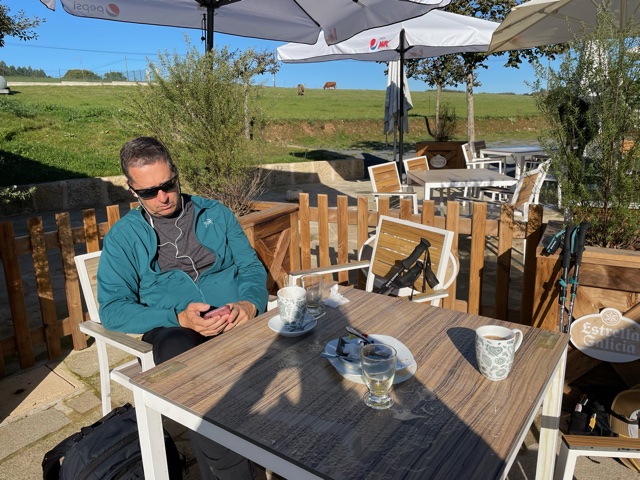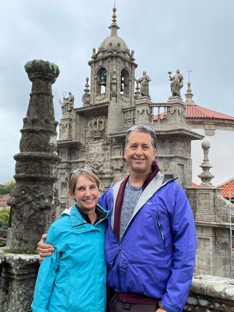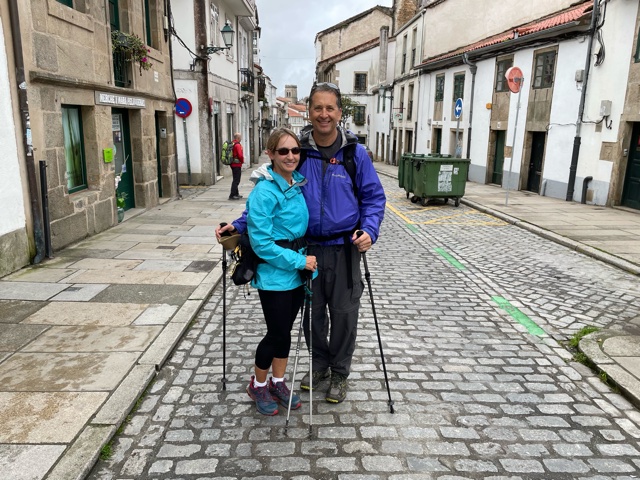 And here’s a photo of Rick and me – with our backs facing our direction tomorrow when we start walking again towards the ocean and Finisterre.