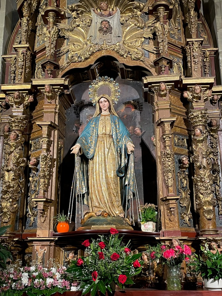 “The particles remaining from the miracle were eventually placed in a silver reliquary donated by Queen Isabel herself. The church’s statue of the Virgin is said to have inclined her head so as to better view the miracle.”