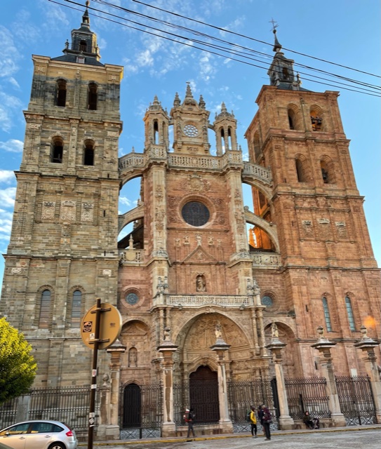 And then walked into Astorga. I am in a really nice hotel – surprise! Right next to the cathedral, truly quiet, clean, so nice. I remarked on the change from the gas station hotel to the front desk clerk and she said – well, that’s the Camino. A different experience every night! True, very true.