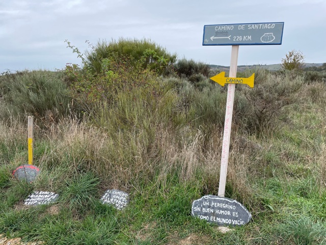 But it was pretty, land changing again, starting to be a bit hilly, just slight, tomorrow the climbs start happening. Happily, tomorrow is only 10 miles. The photo above was a fun pilgrim statue – and that was it for that town. Don’t know where the town was, maybe it’s just a sign of a town.
