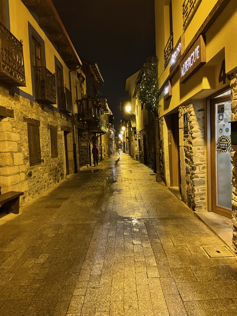 Then I got to my town for the night, Molinaseca. A beautiful town. Here’s a day shot, then a night shot. Sue said it looked like Diagon Alley.
