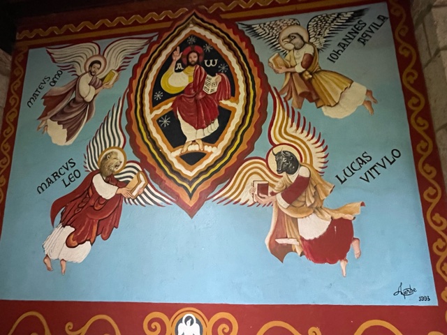 The photo below is from a mural on the outside of a church outside Ponferrada, I’ve never seen the gospels pictured as animals. Attracting pagan practioners? Particular traits to all but Matthew?